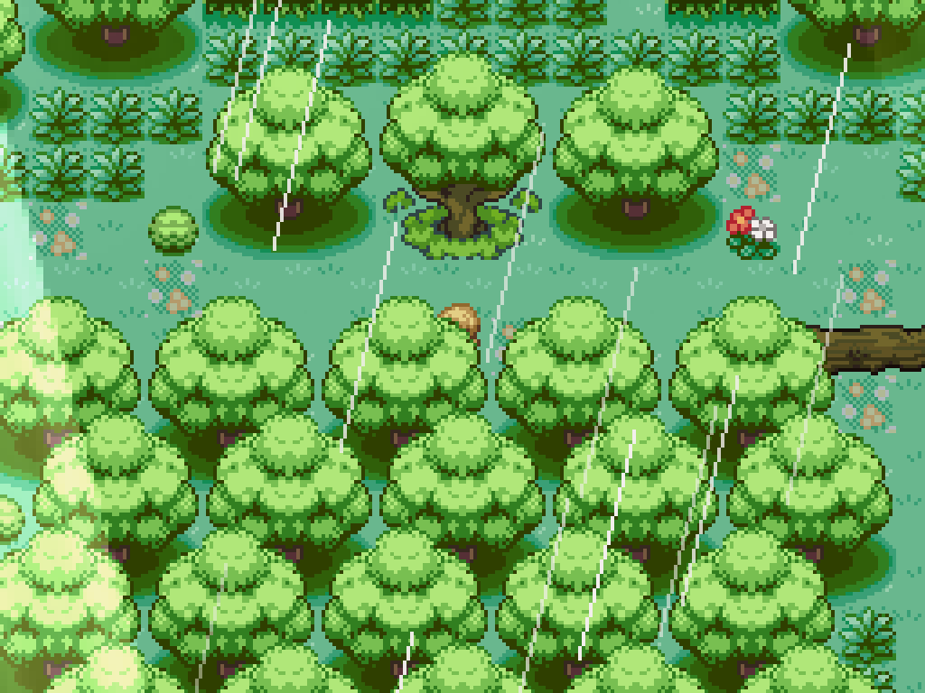 In the tall grass on the right of the final exit, you can make it to another honey tree. Have the Pinsir destroy the log you moved out of the way to access a small set of (fishable) pools. This is the only place you can find Dewpider or Araquanid until the postgame. If you come back here after you get the 13th badge, you can get the Sharpedonite too.